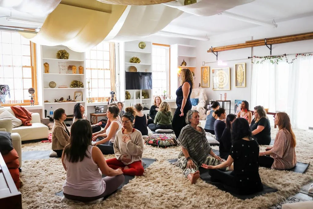 Amenities: Floor chairs, pillows, and yoga mats available for use